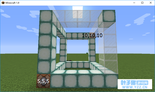 正方体保护区 如果保护区域是个正方体呢?就需要这个正方体的两个对角的坐标。(为了区分两个对角,一个对角起名m,一个起名n) 我们不能输入两个mn的坐标。但可以先输m的坐标,而n的坐标以m的坐标在xyz轴上分别延伸了几格的形式输入。 例如要保护的区域的坐标分别是 m(5,5,5) , n(10,10,10) 。 以m坐标为中心点输入:[x=5,y=5,z=5,dx=5,dy=5,dz=5]。 以n坐标为中心点输入:[x=10,y=10,z=10,dx=-5,dy=-5,dz=-5]。 /execute @p [x=5,y=5,z=5,dx=5,dy=5,dz=5] ~ ~ ~ /gamemode 2 @p 这只是选定了区域,如果执行会出现一个问题。已更改模式的玩家还会不停地设置模式,类似刷屏了。我们需要将已是冒险模式的玩家剔除到需要执行命令的玩家之外。 我们加一条:[m=!2]。m 游戏模式选定玩家,=! 是模式不等于指定模式的玩家执行命令。 /execute @p [x=5,y=5,z=5,dx=5,dy=5,dz=5, m=!2 ] ~ ~ ~ /gamemode 2 @p