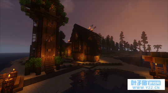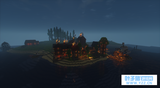 酒馆(夜) 还顺便拍了个夜景图。 对...突然想起了个问题,酒馆厨房是不是得加个烟囱? 恩...到时候再说吧。