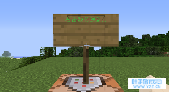 右击后的告示牌 当然你也可以做更多的内容。 先写两个告示牌的内容: 第一个:/setblock ~ ~1 ~ minecraft:standing_sign 0 replace {Text1:"{\"text\":\"右击我传送到...\",\"clickEvent\":{\"action\":\"run_command\",\"value\":\" 替换牌子的命令 \"}}"} 第二个:/setblock ~ ~ ~ minecraft:standing_sign 0 replace {Text1:"{\"text\":\"传送牌年久失修\"}",Text2:"{\"text\":\"看来是用不成了\"}"} 注:第二个牌子要覆盖掉之前的牌子,所以写~ ~ ~不可更改。 把创建第二个牌子的命令套入第一个的右击命令中: /setblock ~ ~1 ~ minecraft:standing_sign 0 replace {Text1:"{\"text\":\"右击我传送到...\",\"clickEvent\":{\"action\":\"run_command\",\"value\":\" setblock ~ ~ ~ minecraft:standing_sign 0 replace {Text1:"{\"text\":\"传送牌年久失修\"}",Text2:"{\"text\":\"看来是用不成了\"}"} \"}}"} 你以为这样就好了吗?笑话!Mojang没有那么简单 = = ! 上一条命令中的红色是嵌套的。由于某些代码上的限制,需要将红色部分的命令做一些修改。