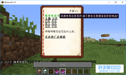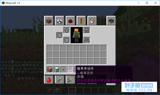 *所有内容均为原创内容,未经允许禁止转载或摘编 MC小知识:当玩家通过命令获得一个不带有正确标签的成书,那么标签只会显示“成书”且内容只有“*非法的成书标签*”("*Invalid book tag*")字样。由于这本书已经是成书所以除非使用命令否则不能编辑。 传送书