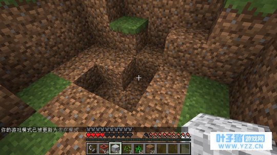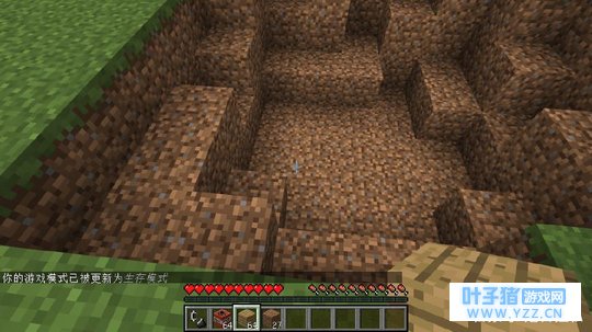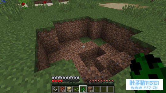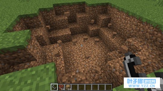 炸出一个大坑,有零星几个掉落的泥土块,熟悉【我的世界】的玩家都知道,炸掉的方块肯定比掉落的方块多。