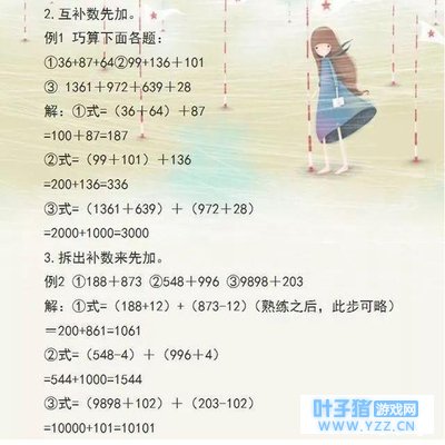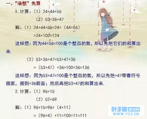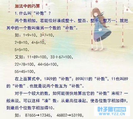 计算,是数学的基本能力之一,数与计算也是小学期间初步掌握的基本知识。从小学一二年级的对数的概念认识开始,一直也是为了之后的计算做准备。 在小学数学中数的概念的认识,从自然数、零到分数、小数,基本上体现了数的发展过程,数与计算也是在不断学习过程中需要解决的一对关系,如整数与分数、越数与倍数,加与减、乘与除、通分与约分等等。 由于长期从教数学,我更注重对于计算能力的培养,之前也跟很多聊到过孩子的学习,一堂考试当中,如果能够争取更多的时间,那么将有利于检验,提高正确率。 这里给大家分享8个速算技巧,可以让孩子在整数、小数、分数的四则运算方面算得又快又准确。 如果家长还需要更多优秀的教育经验,高效的学习方法,资料,提分技巧以及复习资料等(电子版)都可——通过——文末——方式——获取。