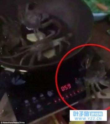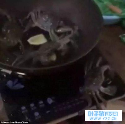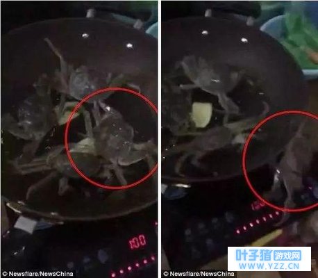图:4只螃蟹遭沸水活煮快死掉, 只有它爬出热锅——钳子一扭关炉火,拯救同伴! 回顾截图: 1、四只螃蟹被丢进油锅煎炸,其中一只试图逃脱: