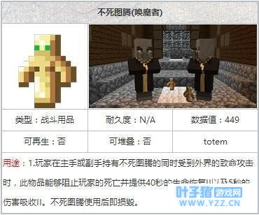 7.不死图腾:在沙盒游戏《我的世界》里面,不死图腾其实就是一种复活类武器,能够在危机时刻帮助玩家们躲过一劫,也是十大神器之一!