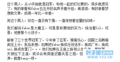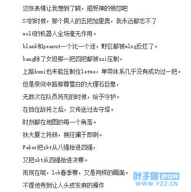 安乐:无论skt成绩咋样!他都是世界公认的第一中单!因为他已经做到了全部!这个从s3开始一直保持着良好状态的大魔王真心恐怖! 指间逝灬流年:你看faker多少岁你再看厂子多少岁,状态会因为年龄而下滑的好吧。 模拟器:至少目前为止,评价一个中单实力都会有一句:是否能单杀Faker。 |