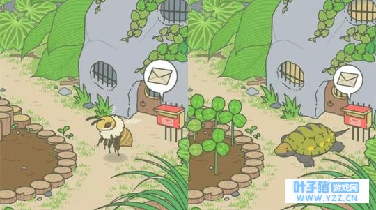 游戏的主页面有两个: 一个是庭院,一个是蛙的房间。庭院的主要功能就是收割三叶草,三叶草就是你的蛙在那个世界里要花的“钱”——不需要种植,每隔一段时间后会自己长出来,点击收割就行。 使用收集的三叶草,你可以去商城里给青蛙买出门旅行要带的东西,有食物、幸运符、道具。游戏中,使用不同价格的食物、幸运符、道具,将决定你家蛙去哪里,去多长时间以及会带回来什么纪念品。 但是大家玩着玩着 就玩出了差距 你收到的明信片可能是这样的 ▼