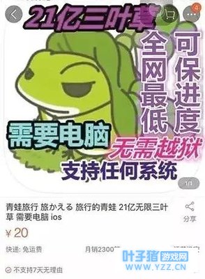 “贫穷”限制了你家蛙的发展 一些网售商家看到“商机” 趁机推出“外挂”服务 售价从20元到50元不等 自称能让玩家获得数量丰厚的三叶草 多名商家承诺 购买服务后 他们会提供“21亿无限三叶草”和“990奖券”