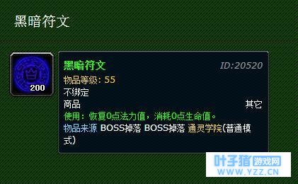 曾经我小时候(9级)有一个满级的姐姐走过来,她送给我一堆吃的,我当然高兴坏了,大号发福利了。究竟是什么呢?是BUFF还是变身效果?一定可以让我变的很强大吧!魔兽真是个有爱的世界,然后我吃掉了棒棒糖,然后我就死了。。。现在我才知道这个小道具叫黑暗符文。在瘟疫之地掉落,比较稀有。效果和术士的生命分流一样,血量比较低的小号,用掉就会跪。游戏里只有为数不多的道具可以让你去死,大部分都绝版了。60年代还有一个叫末日徽记的装备,给你60%加速效果,代价是60%生命,还有90级以下的人一用就会死的拉沙的献祭之匕等等。这些道具都可以让你愉快的去死。。。