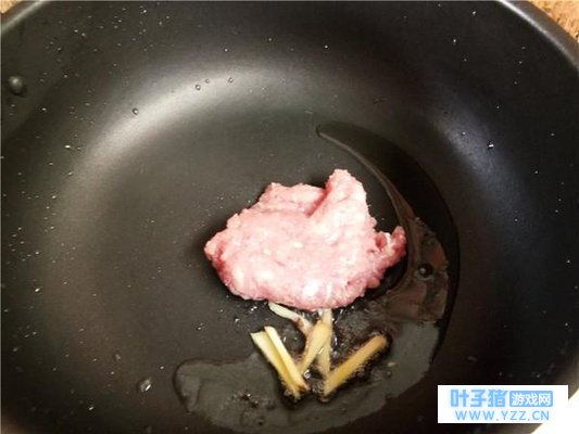 3. 热锅下油,放入姜丝肉末。