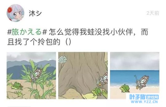 简单来说就是,你有一只青蛙, 你为它准备好便当背包, 它就有可能会去旅行, 也可能在家里呆着吃饭、看书、 写日记、做做手工, 至于它什么时候出去, 什么时候回来, 毫无规律, 你点开的时候, 它是在家还是外出, 也全凭缘分。 这个游戏也可以换个名字叫 “说走就走的旅行”or“蛙蛙去哪了”
