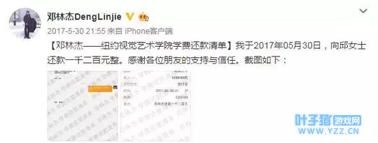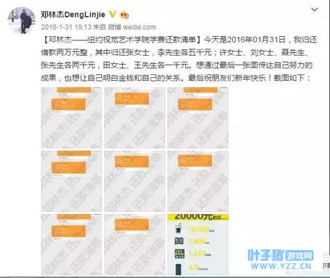 面对网上的质疑甚至是侮辱,邓林杰说到: “难道所有家境不好的孩子,都不允许有稍微体面一点的梦想吗?不允许你梦想成为科学家、不允许你梦想成为艺术家、更不允许你梦想成为梦想家吗?” 当时,有网友为了求证,直接给帮邓林杰写推荐信的美国教授发邮件,美国教授回信确认了邓林杰留学的真实性,并“希望更多的人能帮助他”。一时之间,邓林杰在网上被称为“活股票”。 当时,接受记者采访时,邓林杰就表示,“我卖的是梦想和未来”。 除了质疑的声音,他收到更多的是祝福和直接的汇款。 一位中年女士向他发来信息称:“林杰,也许你在这件事情中体会到了复杂的人性,但请你记取人性中美好的点滴,未来也以美好回馈社会和你身边的人。” 众筹发出后,第一天邓林杰就收到了13万元汇款,大大出乎了他的意料。最终,在239位好心人的帮助下,不到一个星期,邓林杰便凑齐了50万元学费。尽管很多人表示,自己纯粹是“捐赠”行为,但邓林杰仍执拗地签下了协议书,并誓言两年内(2018年1月1日之前)还清本息。 正如前面那张截图所示,邓林杰守住了自己的承诺,2017年12月30日他在自己微博的《声明》中写到:在过去两年间我已分期向资助人归还借款连本带息共 571191.6元 。但由于在还款的过程中,出现有些朋友联系不到,或者联系方式失效的情况,目前有24007元借款无法向资助人安全归还。 他同时发布了54名未取得联系的资助人名单,希望尽快归还剩余的款项。