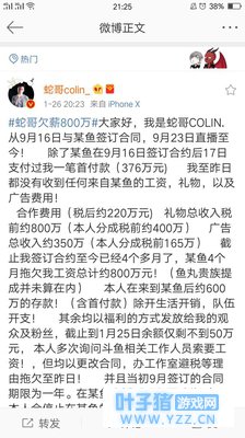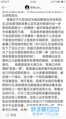 在微博发表声明称:斗鱼还欠他800万的薪酬,而且现在蛇哥将离开斗鱼了,最大的原因是近几天在网上流传的造谣他开挂的视频,蛇哥说斗鱼有严重的抽帧现象,并且自己受到了大量的水军攻击。