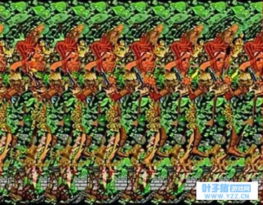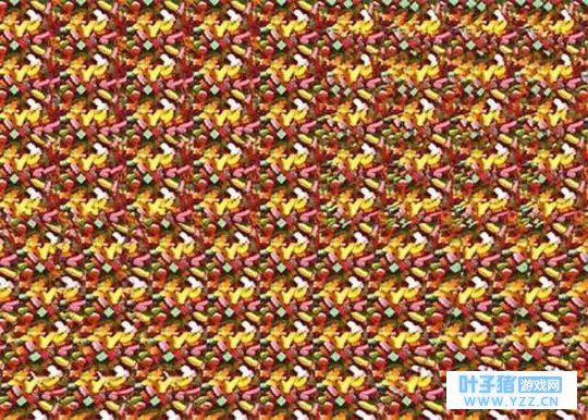 修改的目的在于能使未入门的童鞋更容易理解平行眼的图案重叠。 三.上图只要简单的把图片中的两个白点看成3个,而且保证中间的白点边缘非常清晰,那么恭喜你,进入了本图平行眼的第一层重叠。 下面是让两白点重合的过程(累了就眨眼,不要怕看丢了,有耐心都能做到): 1.正常大小(无缩放)观察白点,放松双眼,让白点模糊,让两个清晰的白点变成三个模糊的白点。 这个模糊对有些同学来说可能没那么容易,我是这么做的。(能在平时的位置直接模糊成三个白点的童鞋请跳过这一步) 正常距离看白点,如果无法模糊,那么慢慢靠近屏幕,保持放松,白点自然会模糊并由两个变成四个,慢慢靠近屏幕,直到中间的两个白点重合,变成三个模糊的白点,这时就保持这个位置不要移动了;切勿离屏幕太近伤眼。 这个方法几乎是强制让双眼模糊;因为平时看屏幕的距离比较固定,双眼形成习惯,即使靠近屏幕,双眼依旧保持相同的焦距,白点模糊了是因为你的双眼习惯般的看向比屏幕更远的位置,也就是说这时如果屏幕是透明的,你将看清的是屏幕后方的物体。 如果中间过程又习惯性的看清了两个白点,那么重复以上的方法,有耐心任何人都能做到。 2.看着三个模糊的白点,盯住中间的,努力去看清这个白点,直到这个白点的边缘也看的非常清晰。 “看清楚”这个过程眼睛会自动完成,只要你心里想着看清就好了。 3.中间的白点清晰后,慢慢下移你的视线,看到清晰的硬币背景和五个清晰的浮在背景上的硬币,恭喜你,你进入了平行眼的第一层。First blood! 4.继续观察五个清晰的硬币,并时不时眨眼来缓解眼睛的疲劳,保持这个过程,一般来说,看清五个硬币后眨眼并不会使硬币消失,如果消失了,重复以上过程。 5.盯住浮起来的硬币,慢慢向后移动身体,直到回到平时看屏幕的身体位置,固定后继续观察五个硬币,并保证眨眼和轻微的头部移动都不会使硬币消失。 多看一会儿,让眼睛记住这个感觉,形成记忆。这个过程一旦记住了,就不会忘记,就像骑车游泳一样,形成身体记忆。这时候你学会的其实是是如何穿过屏幕看清后方的物体,即使这个物体被屏幕挡着你看不到,屏幕已经阻止不了你了! 重复以上过程,直到你越来越快的看清浮起的硬币。 6.增加一点难度,让一切回复原状,保持平时看屏幕的位置,放松双眼,去把两个白点变成三个,是的,你能做到了,在平时的位置你也轻松的看清五个浮起的硬币,眨眼和轻微的身体移动都不会让硬币消失。 7.再增加一点难度,把带白点的图扔了吧,换成图一,直接观察图一里两个相邻的重复图案(比如图中最上方靠近中间的两个深铜色硬币),让它们两个变成三个,模糊变成清晰,直到五个硬币再次浮起,继续稳定这个过程,让五个硬币出现的越来越快。 这个过程需要多次重复,每天分多次看,让眼睛记忆这个过程,形成条件反射。多次记忆比单次长时间有效的多! 看金币看腻了你可以找一些其他的图,如果图片里两个相同图案距离比白点远,你可以稍微缩小图片看。 贴吧内的图片区里很多好图。 到这里你已经学会看平行眼立体图了。 恭喜你打开了新世界的大门! 交叉眼练习法 一.推荐入门图 图一 (引用自贴吧图册"左右格式交叉视线立体图片"内的施瓦辛格)