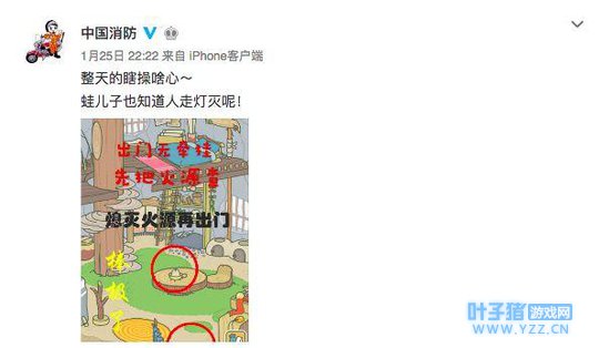 @中国消防还留言说:消防常识不学好,蛙蛙迟早火上烤!并配了一张图: