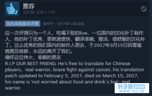 生存游戏已经纷纷走向了“大逃杀”模式,而 当年和它同步上线Early Access的其他生存游戏,大多仍然在Early Access阶段:Rust、DAYZ、H1Z1 ……而且《美丽水世界》甚至 没有联机模式 ,而官方表示未来也不会有。这引起了一些玩家的不满…… 不过《美丽水世界》自有它的宁静。 值得纪念的游戏和值得纪念的人 当你打开Steam的游戏页面,你能够看到国人对Unknown Worlds为玩家提供良好游戏体验的喜悦,也能看到他们对于汉化者Live的敬意、缅怀和思念: