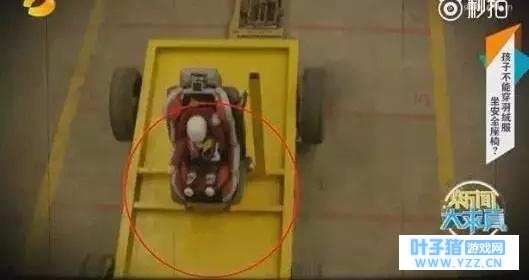 慢着!就这个无心的举动,有可能会让宝宝因此“丧命”! 很多家长不知道,羽绒服+安全座椅,分分钟让你的安全座椅变成“人间大炮”。 最近一档湖南卫视的《资讯大求真》里的科学实验,就用实验的方式给我们展示“冬天穿羽绒服坐安全椅的危险性”。