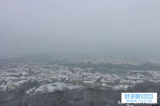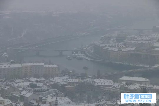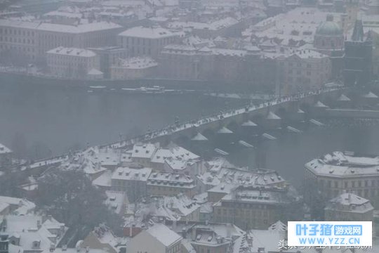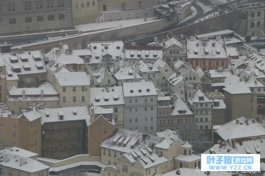 大雪天里再鸟瞰: 我第二次来到这个鸟瞰点时,布拉格已经进入了深冬。缓缓飘落的雪花堆积在屋顶,覆盖了屋顶所有的红色和绿色。 整个布拉格,几乎没有高楼,矮矮的,像是矮到了雪地里。