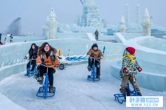 在冰雪世界里骑自行车,暖和又安逸 小提示:冰上自行车跟情侣更配哟! 看冰灯