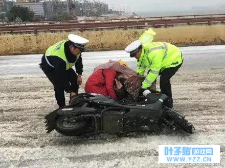 via:小王纸 在交通方面也是有一定影响的。 你看,这里就有一辆电瓶车打滑摔倒了!
