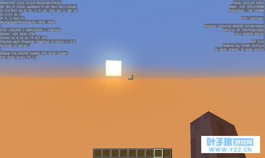 由于在生存模式下使用方块“搭高高”的高度是有限制的,说我们直接打开创造模式开始往上飞,随着距离升高世界的边缘开始渐渐模糊,竟然真的有一种空气逐渐稀薄的感觉!(途中的白色块状物就是云层)