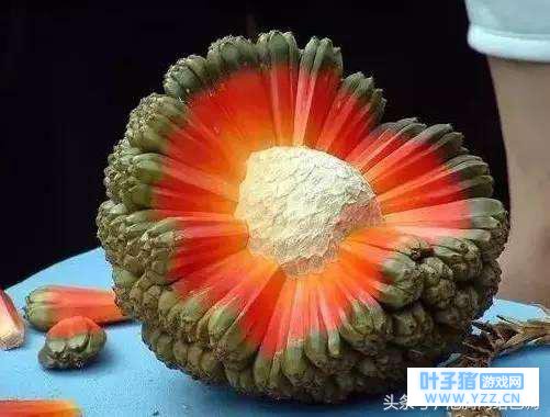 8.哈拉果 哈拉果的口感应该是甜的,它有一个内核和数百个突起的条状果肉,吃法和吃甘蔗类似,就是咀嚼完果肉的后汁水吐掉。