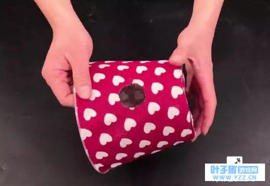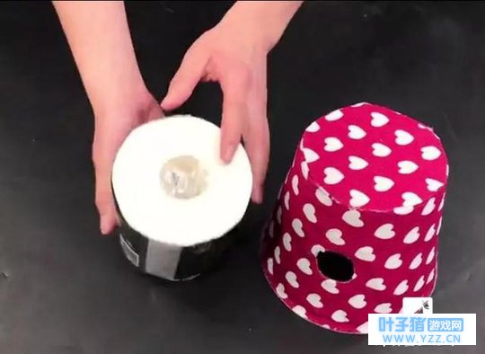 7、纸筒芯对准刚刚切出来的小圆形孔,把卷纸放进去后盖上盖子就完成了。
