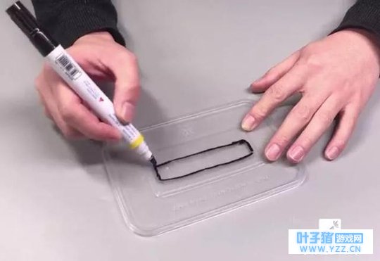 1、在盒盖中间,用黑色马克笔画出一个长条形。