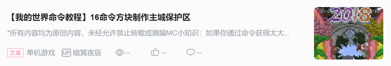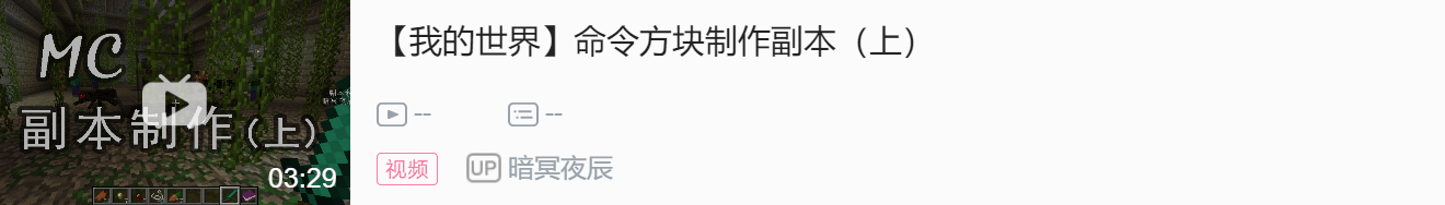 注意:除了第一个是脉冲方块、红石控制,后面的都设为连锁方块、保持开启。命令方块箭头朝向一定不能错!因为连锁命令方块是指向性的! 1号检测玩家暗币是否在-2147483648到19的范围 ( 不受制约 ) :/scoreboard players test @p[ 初级副本传送点区域 ] money * 19 2号如果玩家money不够20分告诉玩家money不够 ( 条件制约 ) :/say @p[ 初级副本传送点区域 ] 暗币不足,再去挣钱吧~! 3号将money不够的玩家传送到副本大厅 ( 条件制约 ) :/tp @p[ 初级副本传送点区域 ] 副本大厅传送点 4号检测玩家暗币是否在20到2147483647的范围 ( 不受制约 ) :/scoreboard players test @p[ 初级副本传送点区域 ] money 20 5号如果玩家money够了就扣除20暗币 ( 条件制约 ) :/scoreboard players remove @p[ 初级副本传送点区域 ] money 20 6,7,8,9将玩家相关记分板分数清零 ( 条件制约 ) 6:/scoreboard players set @p[ 初级副本传送点区域 ] fbjf 0: 7:/scoreboard players set @p[ 初级副本传送点区域 ] zombie 0 8:/scoreboard players set @p[ 初级副本传送点区域 ] spider 0 9:/scoreboard players set @p[ 初级副本传送点区域 ] pigzombie 0 10号将玩家传送到试炼场 ( 条件制约 ) :/tp @p[ 初级副本传送点区域 ] 第一个初级试炼场传送坐标 90 0( 90 0是玩家传送到坐标后的朝向 ) 11号清除试炼场的怪物 ( 不受制约 ) :/kill @e[ 第一个初级试炼场区域 ] 条件制约是上一个命令方块执行命令成功才执行自己。 不受制约是 不论之前的命令方块执行成功或失败都执行。 第二排的命令方块链除了10号和11号中的 橙色部分 要改,其他的都一样。 那么至此,初级试炼场的玩家分配就做好了! 高级试炼场的玩家分配再建一个红石部分,改改命令中的坐标。加一个烈焰人记分板清零的命令方块:/scoreboard players set @p[ 初级副本传送点区域 ] blaze 0。 ~~~~~~~神奇的分割线~~~~~~~ 这一期的配套实在是太多了,红石也都是自己建的,改了挺久的。反正种种原因导致更的慢了还请小伙伴们见谅! 视频链接:https://www.bilibili.com/video/av18832111/