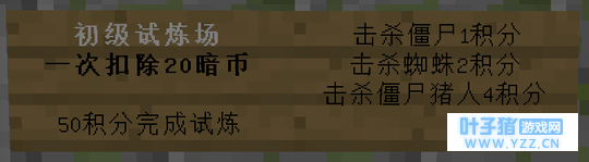 高级告示牌命令见13期 高级试炼场有效击杀怪物是 僵尸 (1分)、 蜘蛛 (2分)、 烈焰人 (5分)和 猪人 (8分)。进入试炼 扣除 60 暗币 (服务器的记分板货币)。达到 100 副本积分 后 完成试炼。 记分板 副本需要什么基础命令的支持呢, 记分板!