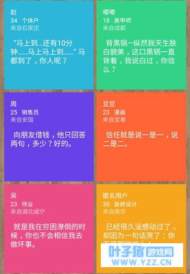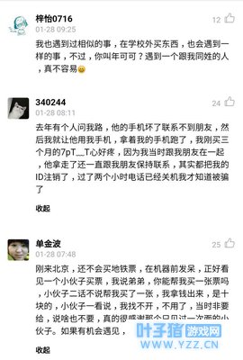 @卢磊: 在街上遇到两个衣衫褴褛的老两口,上来说能不能给几块钱买东西吃。首先想到的就是另类乞丐换种方式要钱,我说我直接带你们去吃东西。准备带他们去餐馆里吃点热饭菜时,他们说一会还要去赶火车,吃两罐八宝粥就行了,别的就不用了。看着他们大口吃着八宝粥的样子,感触良多,虽然也怀疑过,但可以花几分钟来证实。事实证明,在别人需要帮助的时候,你的信任和援手是在寒冬里最温暖的东西。 @小艾: 我们这里属于贵阳很偏远的小镇,多少成年人都在外打工。一天一个小男孩来交话费,因为奶奶生病了在医院,需要转院。他需要打电话给他父母,可一查话费欠45块钱,他和同学两个加起来总共也才20块钱。 看他着急的,我就给他交了100元,给他说爸妈回来再把钱给我就行。当时我的朋友就说他不给你怎么办,我说我相信他,毕竟情况也很急。可过了两个星期,小朋友还是没把钱拿过来,我心想可能真的如朋友所说的那样了。 直到有一天,那小男孩才带着他奶奶,拎着一壶菜油来到店里,并带来了那100块钱。原来,这两个星期奶奶都在贵阳的医院里,才出院没几天,当时我心里那个惭愧。油留下了,钱叫奶奶拿去买点吃的了。