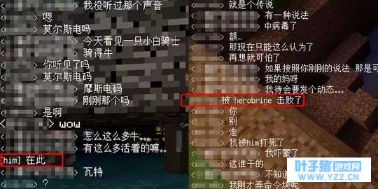在我的世界种种诡异的传说之中,有一个叫Herobrine的人,当他出现你会听到类似于摩斯电码的声音并且有强烈被注视的感觉,随后间歇性的失明甚至游戏界面都会被篡改!他杀人于无形,据网友猜测他的外形和史蒂夫很像但是双眼竟是白色的!
