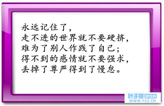 永远记住了,走不进的世界就不要硬挤,难为了別人作践]自己