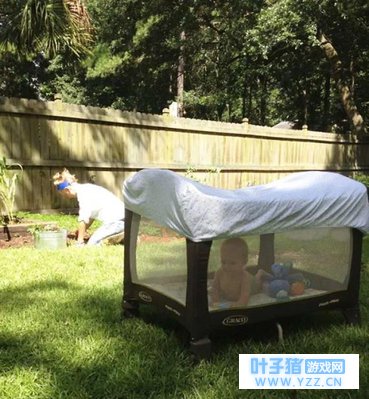 9、当你想把宝宝带到院子里,呼吸新鲜空气, 如果想防止蚊虫叮咬,用床单覆盖婴儿床的顶部。