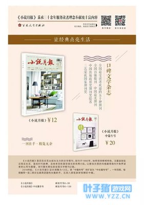 敬告读者:《小说月报》《小说月报·大字版》2018年起将调整为每期12元。原《小说月报》中篇专号将扩容为中长篇专号,每年4期,每期20元。 长按识别图中二维码 订阅小说月报微信 小说,就是小声地说 小说月报微信 刊物最新动态,作品精彩文字,作家创作感言,读者阅读心得,文坛潮流脉动,随时随地向您报告。 |