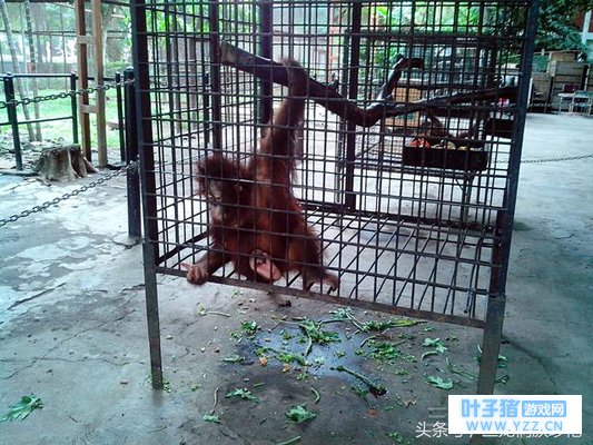 笼子里的猴子,有时看到它想拿地上的食物却怎么也够不着