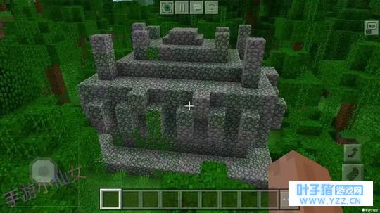 但没有守卫并不意味着就安全。事实上遗迹内部的陷阱更为致命,新手玩家往往就吃了苦头。 丛林神庙坐落在雨林的边缘,一个世界普遍有多个神庙。苔石与圆石构成的外形很是显眼。