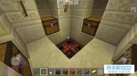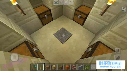 沙漠神殿的主体部分是个金字塔,进去内部后,可以看到中央蓝色的地板,挖开会看到下方隐藏的宝藏,有4个藏宝箱。但千万不要直接从中央跳下去。