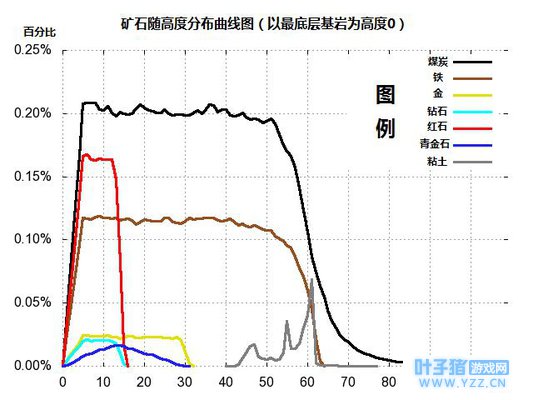 从图中可以看出,矿石的出现几率只和高度有关,另外如果想要找到红石和钻石的话,最好挖到10层以下吧。