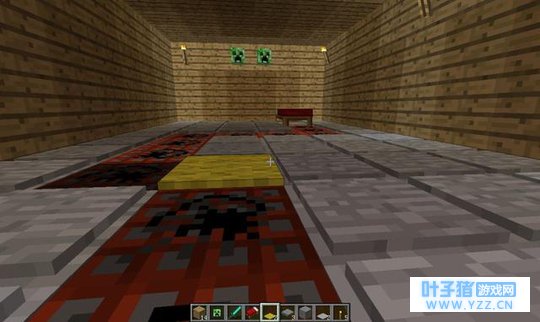 原来地毯下覆盖的竟然是TNT炸药!而周围的“石头”地板其实也都不是普通石头而是压力板,只要不熟悉的人一不小心走出了地毯,踩到了任意一块压力板都会引爆临近的TNT,那时的场面就是这样的。