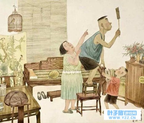 绘画「童趣看到镜子中自己傻傻的样子,有什么可烦恼呢」