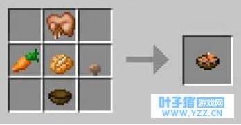 这个东西的兔肉相对于新手还是比较难去的,玩家靠近兔子的时候,兔子会跑掉,所以玩家只能用弓箭射击。兔肉煲的做法第一行中间一块熟兔肉,第二行胡萝卜*烤马铃薯*蘑菇,第三行中间摆上碗,这样一碗兔肉煲就好了,话说什么时候《我的世界》已经到中国了,什么时候推出一个重庆鸡公煲啊! 四、金苹果