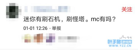 当初看到这条评论,小编再次感到搞笑。刷石机?刷怪塔?这不是生存初期每个新手发育的必需的吗(至少小编肯定会造这两个。)迷你抄袭MC,所以,小编敢自信的说出这样的话:迷你中能造的,MC中肯定能造。