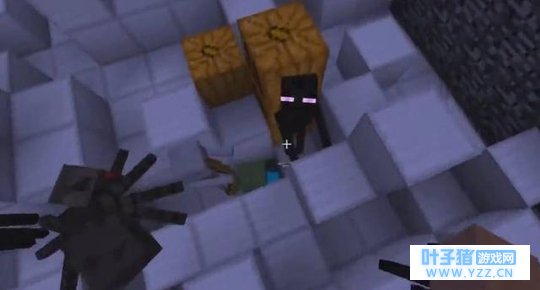 六、末影人也是可以生成铁傀儡的,当末影人偷一块南瓜,放在了铁块上,这样就构成了生成铁傀儡的条件。即便这个概率是非常的小,但是这个仍然是存在的。铁傀儡还可以通过发射器发射南瓜到铁块上形成。