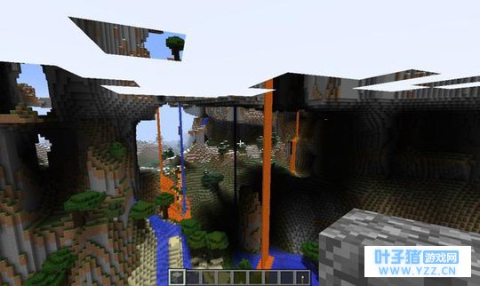 原来,在新建游戏的时候,将世界类型选择为放大化,就会出现这样的效果了。确实,这种模式的地图似乎是将所有山体、洞穴等等自然景观全部放大了十几倍后的效果,尤其以峭壁生物群系为多。地图上还会出现很多在普通模式下不常看到的浮空岛屿,给人一种“天域”的感觉。 当然,由于地形原因,这样的世界可能并不太适合生存,如果你也想欣赏一番这样绮丽的景观,那就建立一个游戏和朋友一起进去看看吧! |