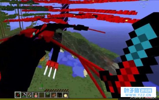 这把剑,威力强大无比的利刃,剑拥有等级,总计11级,升级方式困难,但是最后一级的伤害爆表,几乎是游戏中最强的武器了,最终级右键可以丢出一个无视重力的钻石一直往前飞,碰撞时会天降闪电,一切都会被秒杀,你值得拥有!不过合成升级太困难了,玩家们可以下载一个最中间的mod尝试一下! 3、弓箭