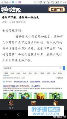这个口号是不是似曾相识?没错 迷你的口号是抄袭TX的 连口号都不走心更不用说游戏了 用脚在抄袭 而官网里的一篇文章绝对会让众多MC粉感到气愤