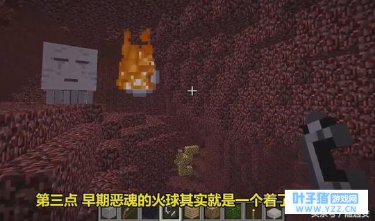 3、早期恶魂的雪球,看起来就像是一个着火的火球,在发射火球的时候,你可以看到,是有一个明显的动画效果,早期只能通过攻击恶魂的触手伤害它,在恶魂死亡的时候,触手会出现一个巨大的箭。恶魂在游戏中是唯一一个拥有两种贴图的生物。