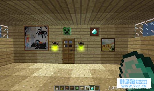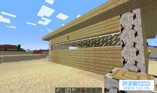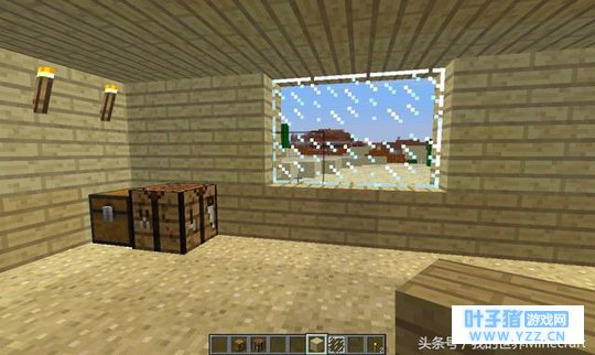 既然是要封闭的空间,那么顶上可千万不能疏忽,在搭建房顶的时候可以选择相同的材料或者有一定色差。这里还有一点小建议,房子的室内高度最好保持在3格高度,这样既不会因为房顶太矮而产生压抑的感觉,又不会影响火把的光照效率。 窗户