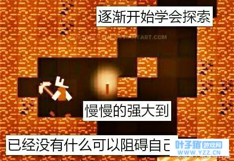 我忘了自己是第几次玩的时候上瘾的,我只记得第一次玩并不抗拒,我在游戏中认识了很多好朋友,也开始为了活下去而整天忙碌,从被迫自卫杀怪渐渐变成了主动撸怪收集素材。 为了在《我的世界》中活下去,我慢慢学会了独立和坚强,从一开始的对满世界都好奇,到了后来有目的的探险,在无尽的黑暗中找寻着光明,在孤独中学会了趴着也要前行。