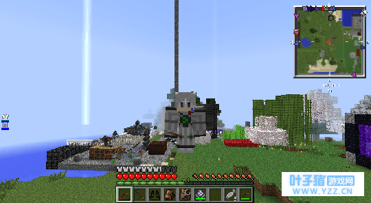 ★按照图中的方式将铁块摆放好,然后在中间的铁块上面放下南瓜(注意是南瓜,不是南瓜灯),就可以召唤铁傀儡啦!